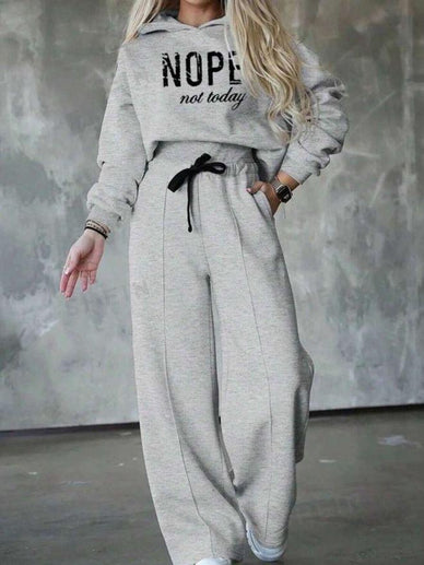 Geripptes Zweiteiliges Damen-Set mit Langarm und Gemustertem Bund – Grau